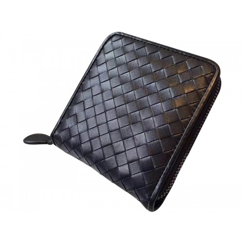 Двусгъваем портфейл с цип Bottega Veneta в черно Intrecciato