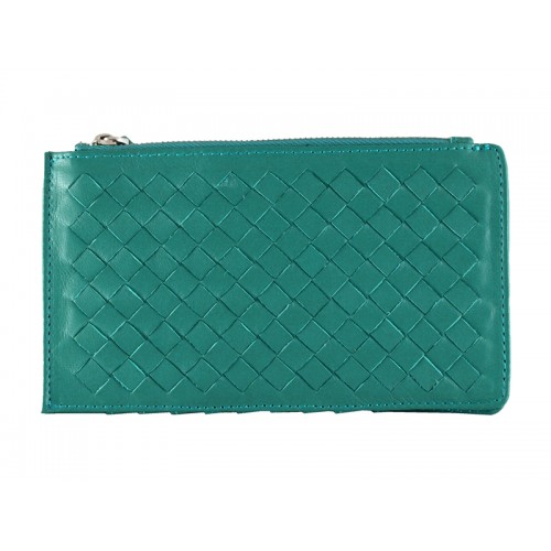 Зелен портфейл от кожа с цип Bottega Veneta Intrecciato Nappa
