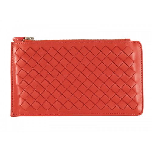 Червен портфейл от кожа с цип Bottega Veneta Intrecciato Nappa