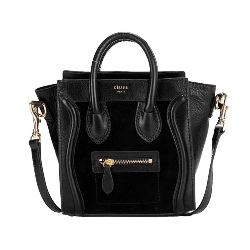 Мини чанта Celine Luggage Tote от телешка кожа, черна/велурена