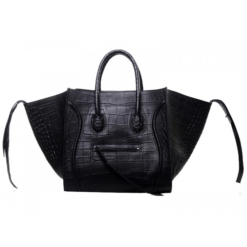 Чанта Celine Luggage Phantom Square Tote от крокодилска кожа, черна