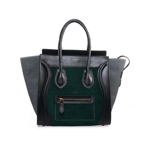Чанта Celine Luggage Medium Tote от телешка кожа, черна/велурена, тъмнозелена