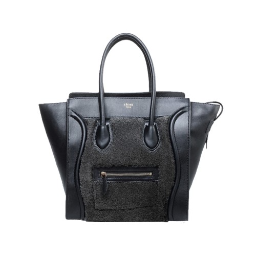 Чанта Celine Luggage Medium от телешка кожа, черна/вълнена