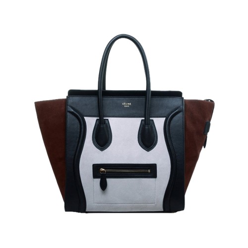 Чанта Celine Luggage Medium от телешка кожа, черно/велурено бяло/кафяво