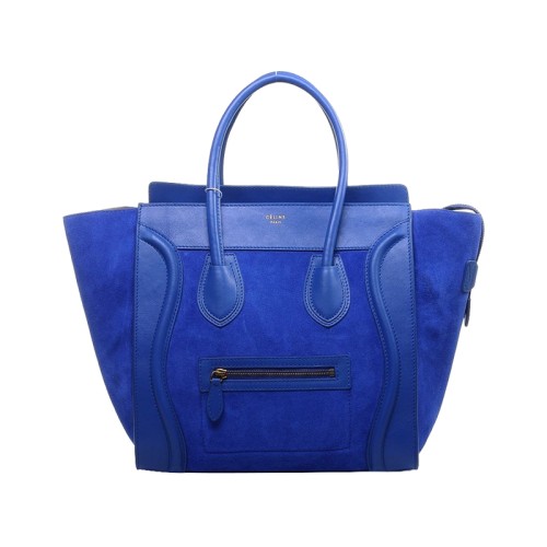 Чанта Celine Luggage Medium Tote от телешка кожа в синьо/велур