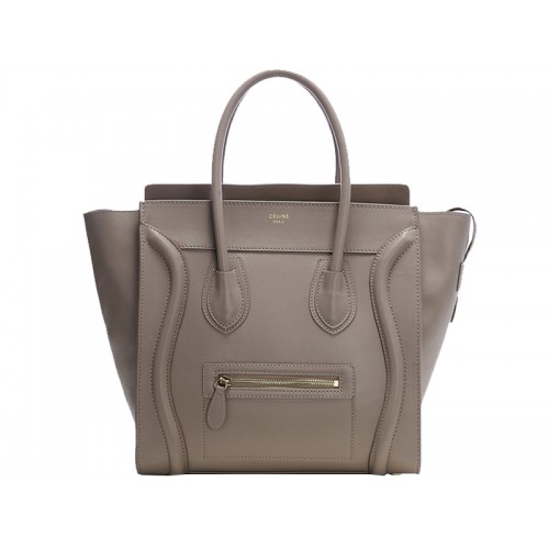 Средна чанта Celine Luggage Tote от телешка кожа в цвят каки
