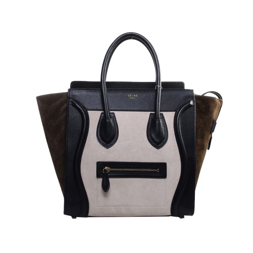 Чанта Celine Luggage Medium Tote от телешка кожа в светло бежово/велурено маслинено сиво
