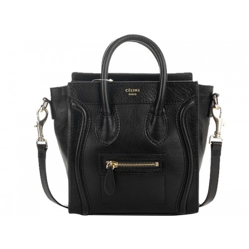 Мини чанта Celine Luggage Tote от телешка кожа в черно