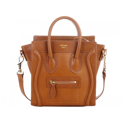 Мини чанта Celine Luggage Tote от телешка кожа Camel