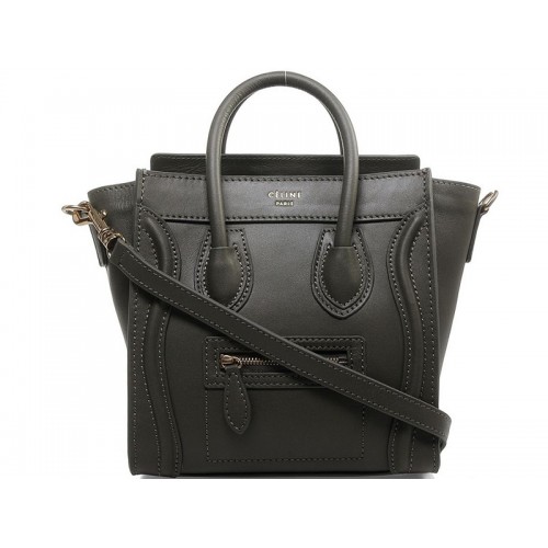 Мини чанта Celine Luggage Tote от телешка кожа, зелено-черна