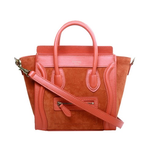Мини чанта Celine Luggage Tote от телешка кожа в оранжево/велурен цвят