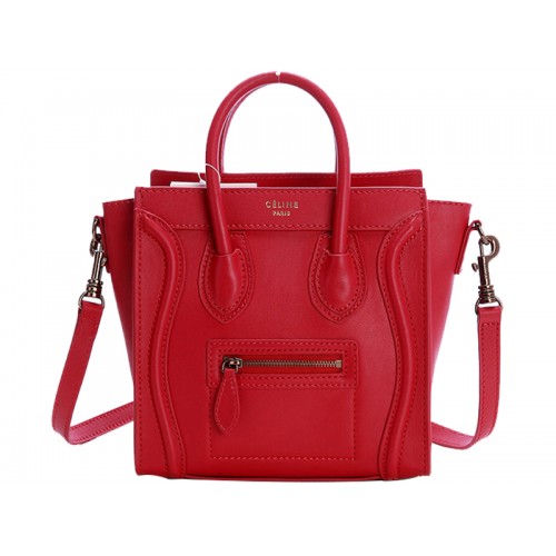 Мини чанта Celine Luggage Tote от телешка кожа в червено