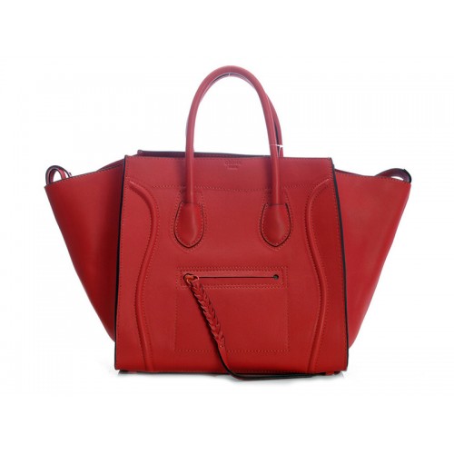 Чанта Celine Luggage Phantom Square Tote от череша с черна тапицерия