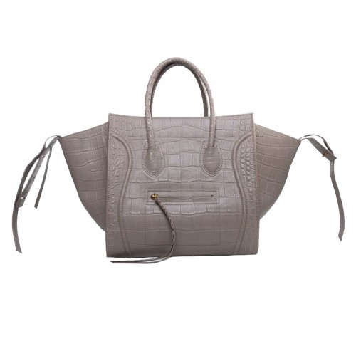 Чанта Celine Luggage Phantom Square Tote в цвят крокодилска кожа в светло каки