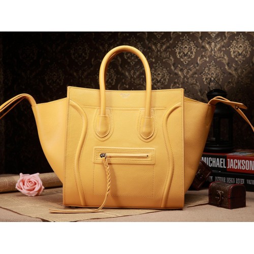 Чанта Celin Luggage Phantom Square Tote от естествена кожа, жълта