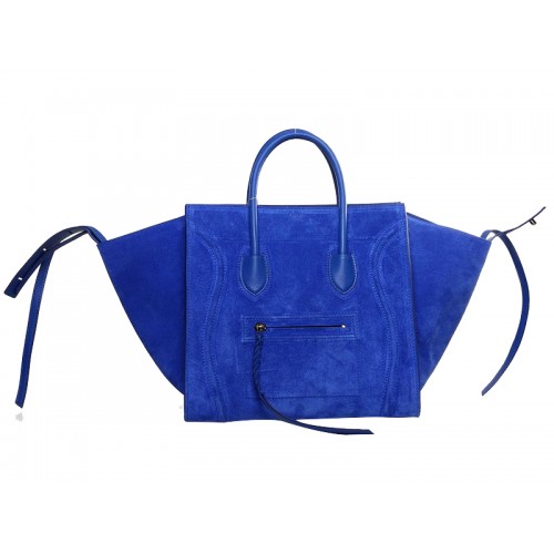 Чанта Celine Luggage Phantom Square Tote от велур, кожена, ярко синя