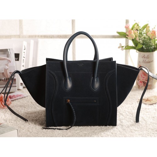 Чанта Celine Luggage Phantom Square Tote от велур, тъмносиня, от естествена кожа