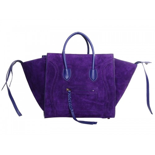 Чанта Celine Luggage Phantom Square Tote от велур, кожа, лилава