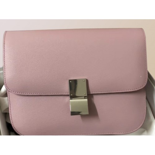 Celine средна класическа чанта в кутия от телешка кожа, розова