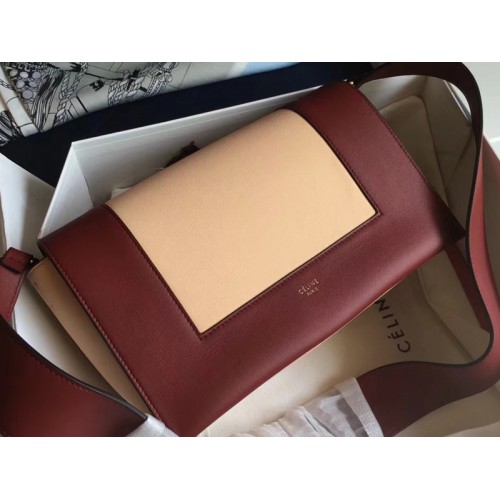 Чанта за през рамо Celine със средна рамка, цвят бордо и камила