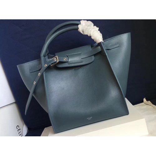 Малка голяма чанта Celine с дълга презрамка от мека телешка кожа със зърнеста текстура в син цвят