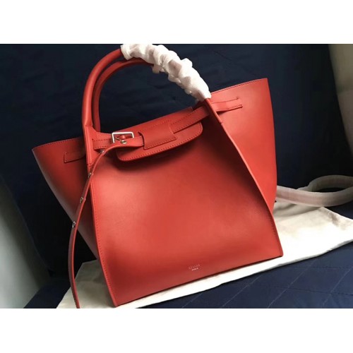 Малка голяма чанта Celine с дълга презрамка от мека телешка кожа с текстура в червено