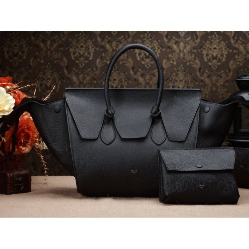 Чанта Celin Tie Nano с горна дръжка от кожа, черна