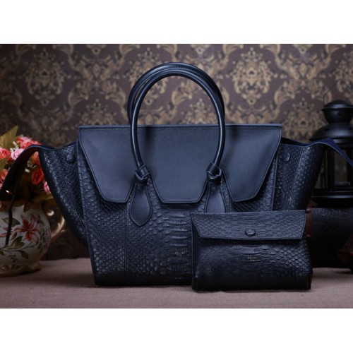 Чанта Celin Tie Nano с горна дръжка от кожа, синя, питон