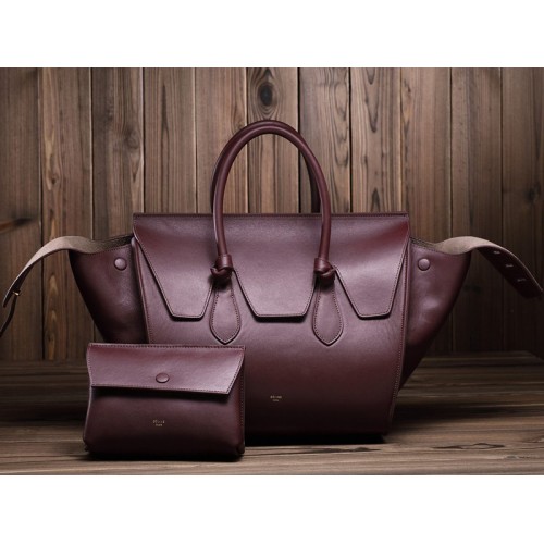 Чанта Celine Tie Nano с горна дръжка от кожа, бордо