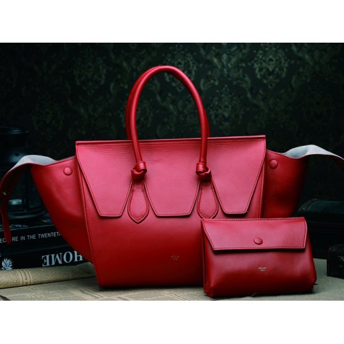 Чанта Celin Tie Nano с горна дръжка от кожа, червена