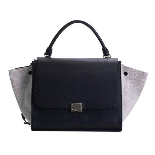 Чанта за рамо Celine Trapeze от телешка кожа, черно/кремаво платно