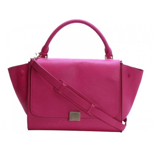 Чанта за през рамо Celine Trapeze от телешка кожа, ярко розова
