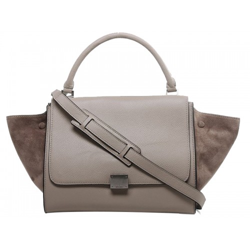 Чанта за през рамо Celine Trapeze от телешка кожа с велур, сива