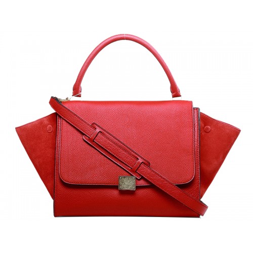 Чанта за през рамо Celine Trapeze от телешка кожа с велур, червена
