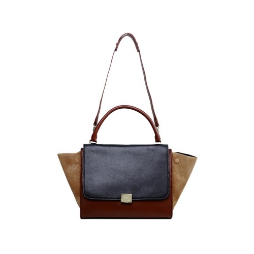 Чанта за рамо Celine Trapeze, многоцветна, от телешка кожа, черно/винено/кафяво