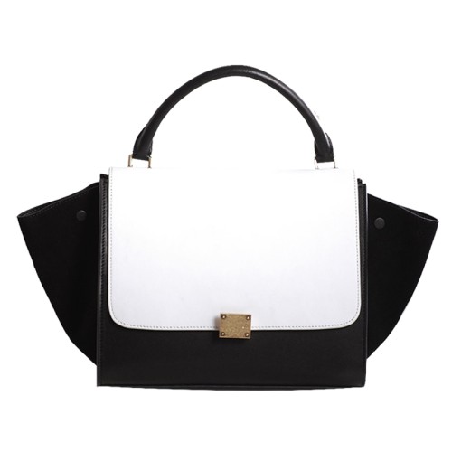 Чанта за рамо Celine Trapeze, многоцветна, телешка кожа, бяла/черна/велурена, черна