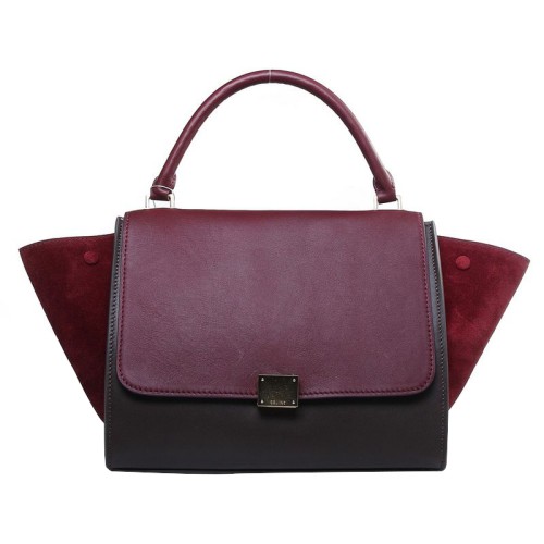 Чанта за рамо Celine Trapeze, многоцветна, от телешка кожа, вино/кафяво/вино