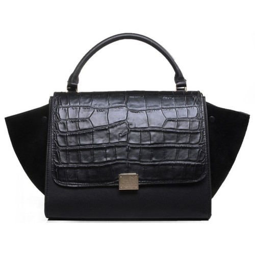 Чанта през рамо Celine Trapeze, многоцветна, от крокодилска кожа, черна/велур, черна