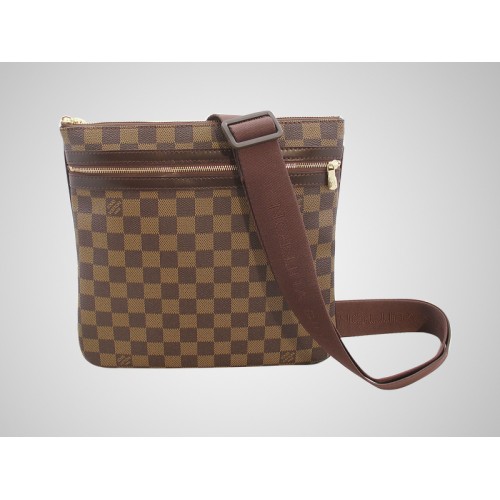 Louis Vuitton представя лека и практична плоска торбичка от платно Damier, идеална за използване в града или за пътуване. Преден джоб с цип осигурява удобен достъп до мобилния телефон, iPod или други аксесоари, докато основното отделение с цип съдържа всички ваши ежедневни или пътнически неща.