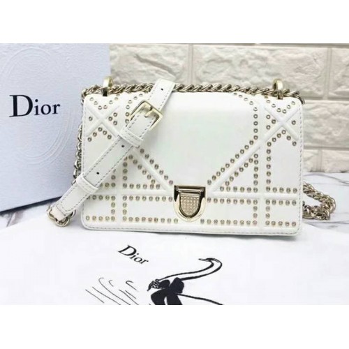 Малка чанта Dior Diorama от телешка кожа, бяла d0421-13