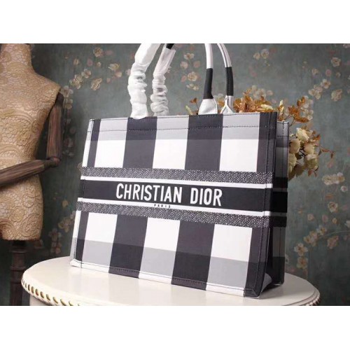 Dior Book Tote чанта в бяло черно бродирано платно.