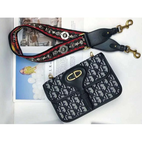 Чанта за пристрастяване в синьо Dior Наклонено жакардово платно, детайли от телешка кожа.