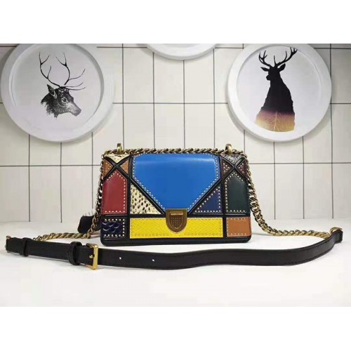 Чанта от телешка кожа Dior Diorama в многоцветно синьо с пачуърк