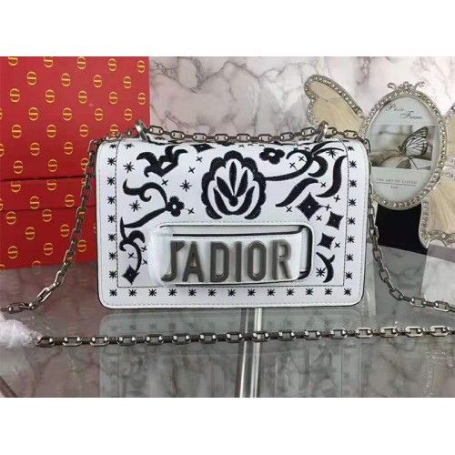 Мини чанта Dior J'Adior с бродирани цветя в бяло и черно