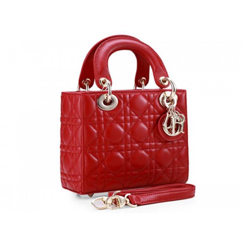Чанта Dior Lady Dior Nano Leather в златисто-червен цвят