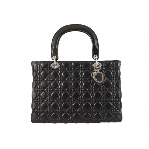Класическият блясък произтича от тази сладко изтънчена дамска чанта. Вдъхновена от ретро квилинг с канаж на Dior, геометрична решетка е зашита върху еластична агнешка кожа, допълнително подчертана от хардуер, завършен със скъпоценни камъни. С дребни кожени дръжки и искрящи талисмани Lady Dior.