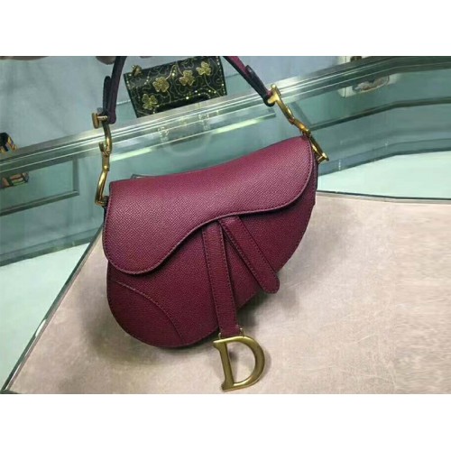 Чанта Dior Mini Saddle от телешка кожа, златист обков, бордо m0447s1