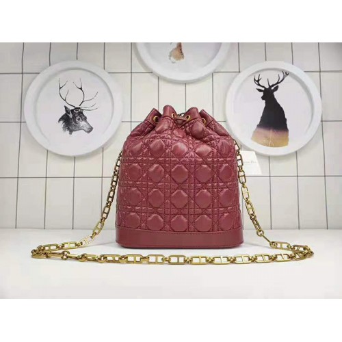 Чанта с кофа Miss Dior в бургундска еластична агнешка кожа 'Cannage'.