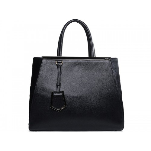 Чанта Fendi 2jours от телешка кожа, черна с козина