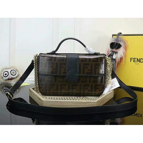 Чанта за рамо Fendi от платно с покритие с FF-печат и гладка телешка кожа.